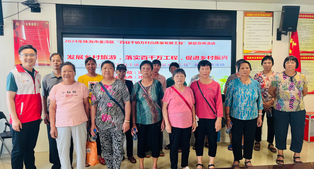 本次讲座是2024年珠海市金湾区“百县千镇万村高质量发展工程”基层宣读活动之一,讲座围绕发展乡村旅游,落实百千万工程,促进乡村振兴开展。沙脊村,是金湾区红旗镇下辖的一个行政村,区域总面积4.26平方公里,耕地面积4425亩。现阶段沙脊村积极谋划推进沙脊村第三产业发展,实施沙脊村“水上集市”及“庭院”经济,利用旧小学地块新建游客中心扩大业态向游客提供更全面的服务场所。目前,示范段工程已基本完成,我村围绕示范段为“核心”,逐步提升完善配套周边产业设施,为沙脊村乡村旅游发展注入“活水”。