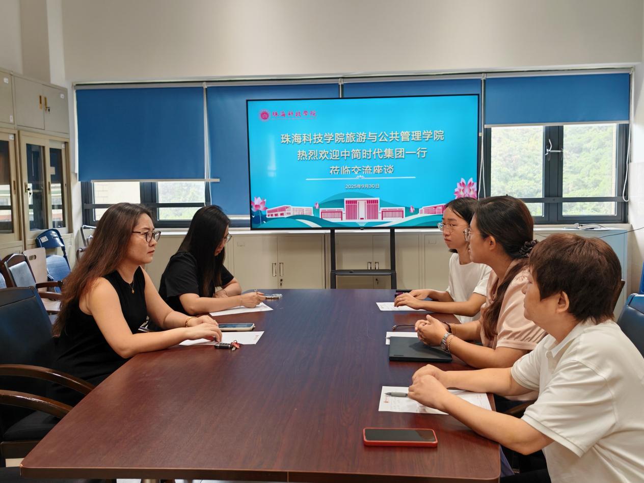 2025年9月30日下午,中简时代(广东)文化传播有限公司(简称“中简时代”)简映雪、赵克微女士一行莅临珠海科技学院旅游与公共管理学院,与会展经济与管理系的教师团队进行交流座谈。