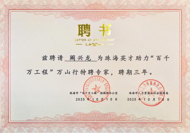 为深入贯彻落实珠海市“百千万工程”战略部署,服务海洋经济高质量发展,2025年10月10日,由市委人才工作领导小组办公室、市“百千万工程”指挥部办公室指导,市人力资源社会保障局主办的珠海市博士博士后助力“百千万工程”万山行暨海洋产业发展学术交流活动在万山区隆重举行。我校旅游与公共管理学院院长阚兴龙博士后受聘为珠海英才助力“百千万工程”万山行特聘专家,并担任渔旅融合组组长。