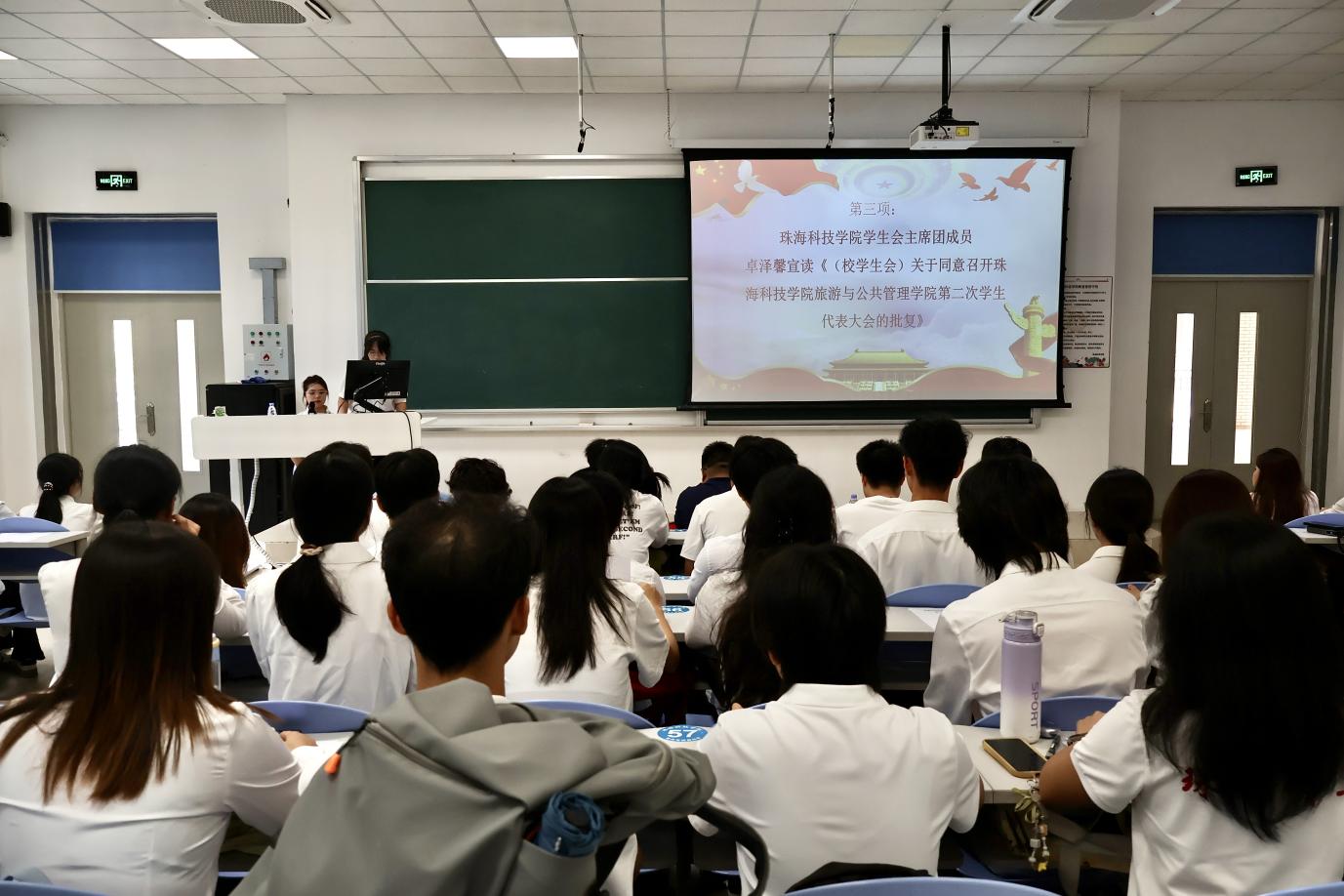 为全面贯彻落实党的二十大精神,努力践行习近平总书记对青年的殷切嘱托,进一步加强学院学生会组织建设,保障学生民主权利,2025年9月19日12:20,珠海科技学院旅游与公共管理学院第二次学生代表大会在国学院K101如期启幕。本次大会由邓昀老师主持,学院师生代表齐聚一堂,共商学生工作发展新篇。