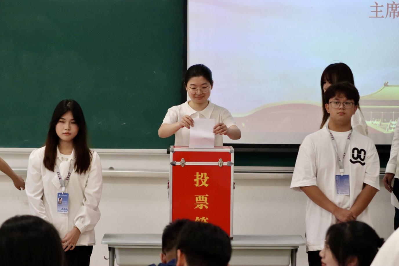 大会的重要议程——第二届旅游与公共管理学院学生会主席团换届选举有序开展。现场宣读了第二届学生会主席团候选人名单,各位代表认真查阅候选人简历,深入了解候选人情况。经审议并通过大会监票人、计票人建议名单后,选举环节正式启动。代表们秉持公平、公正、公开的原则,投下了自己郑重的一票。本次投票后,将根据计票结果选出新一届学生会主席团成员。