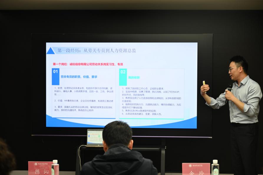 2008级欧得志校友作为本专业深耕代表,分享了在人力资源管理与服务领域的成长路径,强调专业积累与持续学习的重要性。